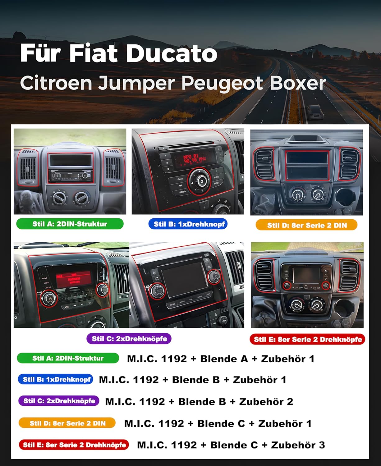 Das Gerät ist für Fiat Ducato, Peugeot Boxer und Citroen Jumper 2006-2024 ausgelegt. |